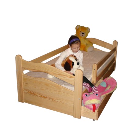 Przedstawiamy Państwu piękne i wykonane całkowicie z drewna sosnowego łóżko dla dziecka. Jego stylizacja stanowi rewelacyjne połączenie naturalnego piękna z nowoczesnym i innowacyjnym wyglądem. Łóżko pozbawione jest ostrych krawędzi, zapewniając jednoczesne połączenie estetyki z bezpieczeństwem. Jak widać na zdjęciach jest to projekt całkowicie odbiegający od innych dostępnych w sprzedaży, wprowadzający do pokoju naszego dziecka wygodny a zarazem zdrowy i stylowy klimat. Dzięki zastosowaniu w łóżku masywnych i szerokich nóg, uzyskaliśmy największą stabilność i najsolidniejszy produkt dostępny na rynku.